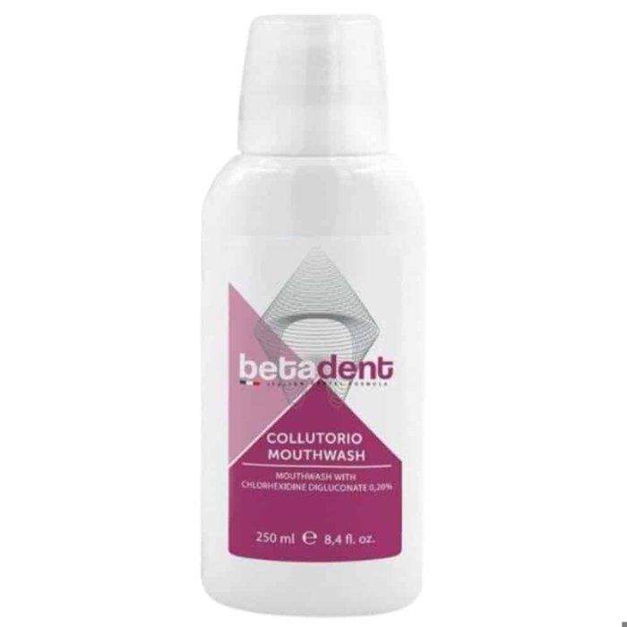 Betadent Bain De Bouche Chlorhexidine 250ml est un bain de bouche antiseptique puissant idéal pour réduire la plaque bactérienne et favoriser la guérison des gencives.